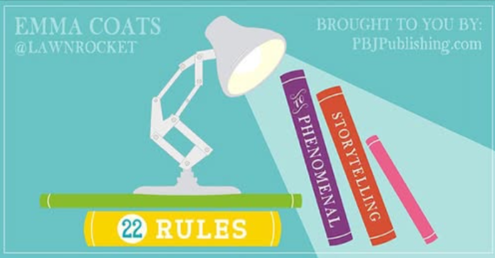 2007년부터 2012년까지 픽사(Pixar)에서 스토리보드 아티스트로 근무했던 인물이다. 그녀는 ‘몬스터 주식회사’ 등 여러 유명 픽사 작품에 참여했으며, 특히 피트 닥터 감독과 함께 여러 프로젝트를 진행하면서 픽사 내부의 스토리텔링 노하우를 익혔다. 엠마 코츠는 감독과 동료들로부터 배운 핵심 스토리텔링 원칙을 ‘#storybasics’라는 해시태그와 함께 자신의 트위터를 통해 공개했고, 이 22가지 법칙은 전 세계적으로 창작자를 위한 표본이 되고 있다.