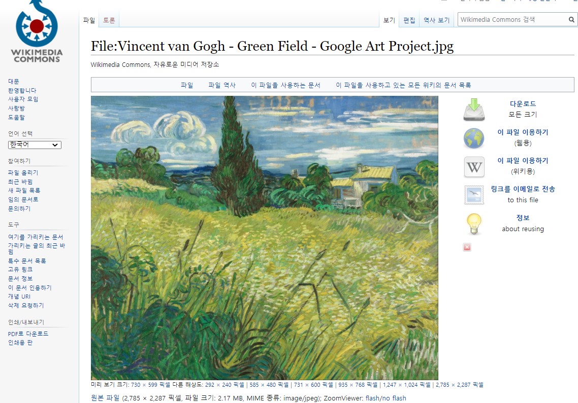 구글 아트앤컬쳐를 통해 다운로드 받고 싶은 미술작품의 고해상도 이미지를 손쉽게 다운로드 받을 수 있는 구조인게 장점이다.