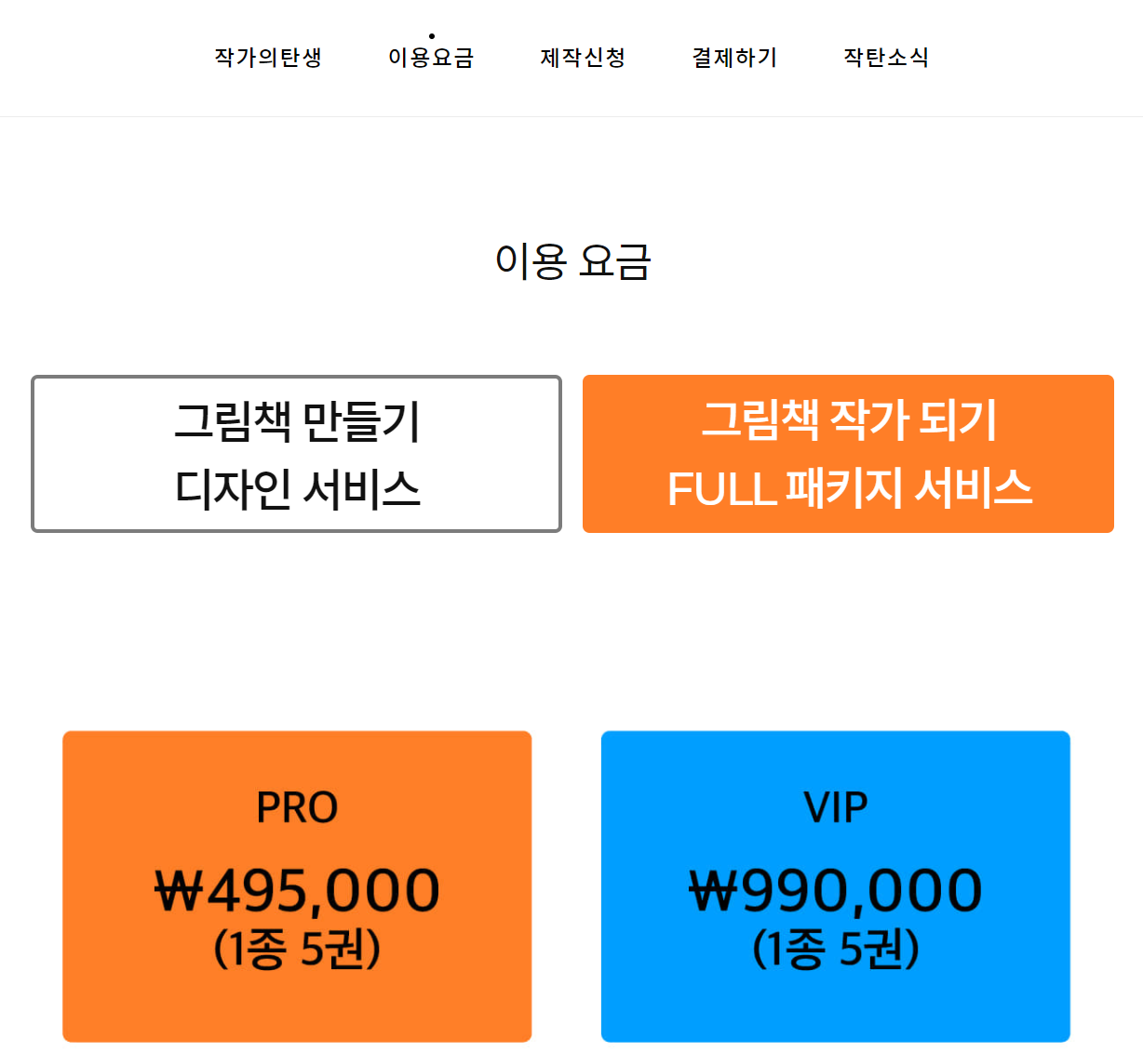약 50~100만원에 그림책 출간서비스를 제공하는 작가의 탄생이라는 서비스를 발견했다.