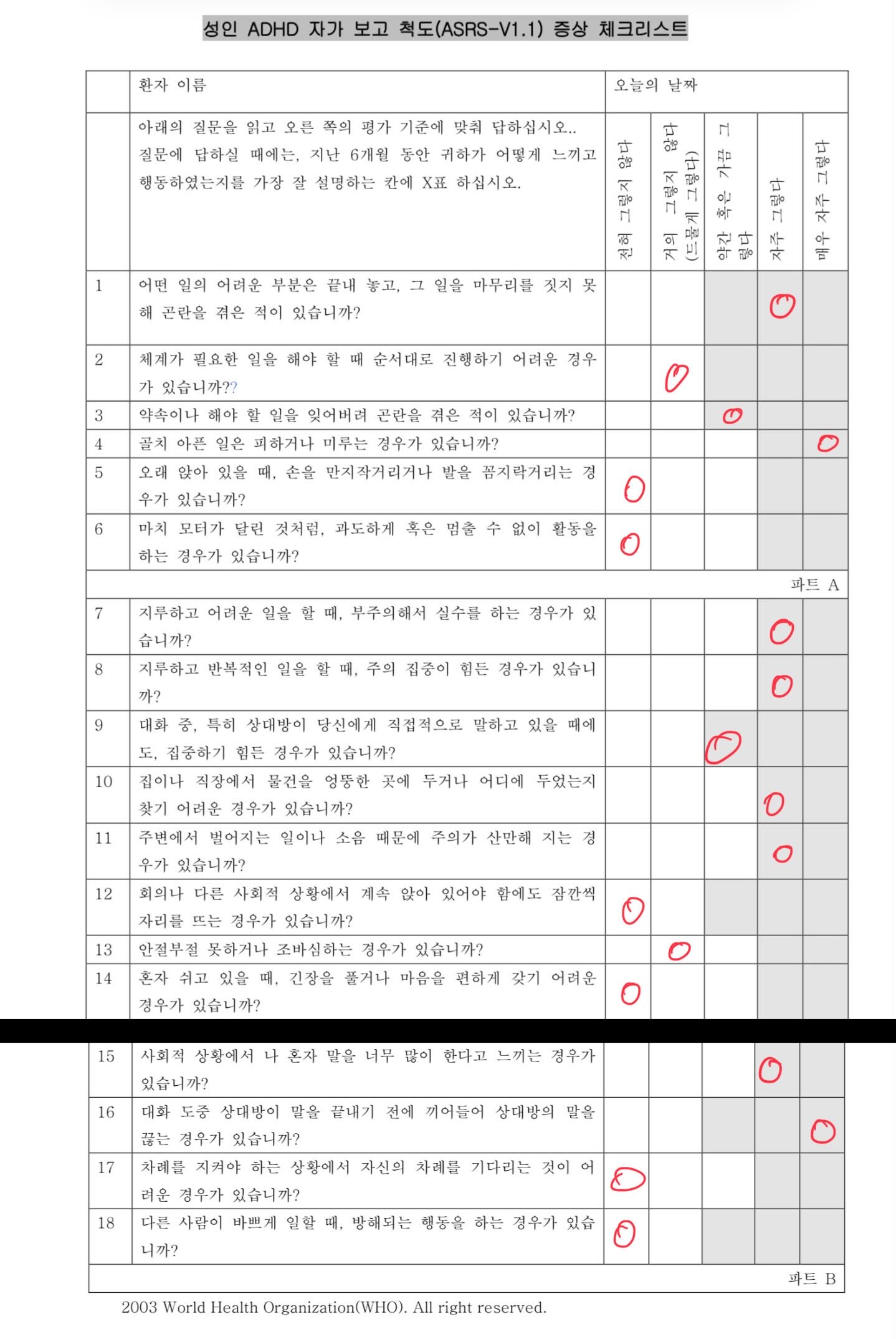 놀랍게도... 병원에서 ADHD 진단을 위해 사용한 질문지가