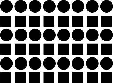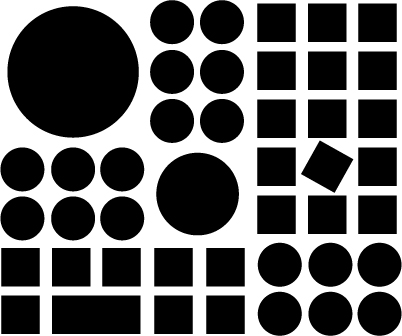 위의 모형은 원과 정사각형이 모여서 전체로 큰 원속에 들어가 있는 원형상을 이루고 있다. 우선 이 형사을 볼것 같으면 불규칙적이고 무질서한 형상이라고 원형상을 이루고 있다. 이런 레이 아웃 작업의 제 일보로써 잡다하고 무질서한 느낌을 주며 이 형상에 하나의 질서를 부여하는 것이 시각적 아름다움과 가독성의 명쾨성을 주어야 비로소 레이아웃 테크닉이 부여된 매체라 할수 있겠다.